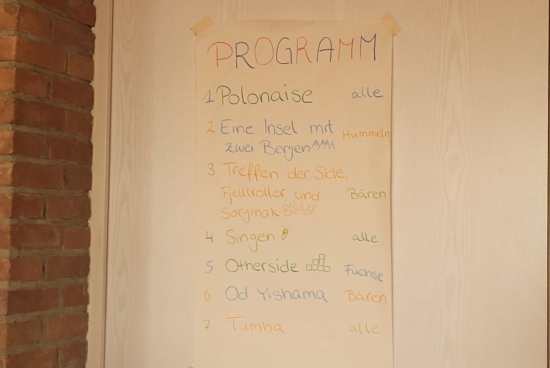 Am nächsten Morgen wurde der Weckdienst fast nicht gebraucht, da auf den Gängen schon getobt wurde. Nach einem stärkendem Frühstück ging es in die Gruppen, wo die Hummeln Kellen gebastelt haben. Die Füchse mussten währenddessen einen Lavafluss überqueren und haben ihre Tanzerfindung vervollständigt. Bei den Bären wurden die Tänze noch mit ein bisschen Magie ergänzt und dann wurde auf die Eltern gewartet. Nach ein paar Spielen trafen die ersten Eltern ein. Und dann war der Moment da auf den alle gewartet haben. Der Auftritt vor den Eltern und Familien. Es wurde getanzt, gesungen und sehr viel gelacht. Einen besseren Abschluss für den Kindertanz könnte es nicht geben. Vielleicht aber im Frühjahr nächstes Jahr. Wir freuen uns schon darauf euch wieder zu sehen.