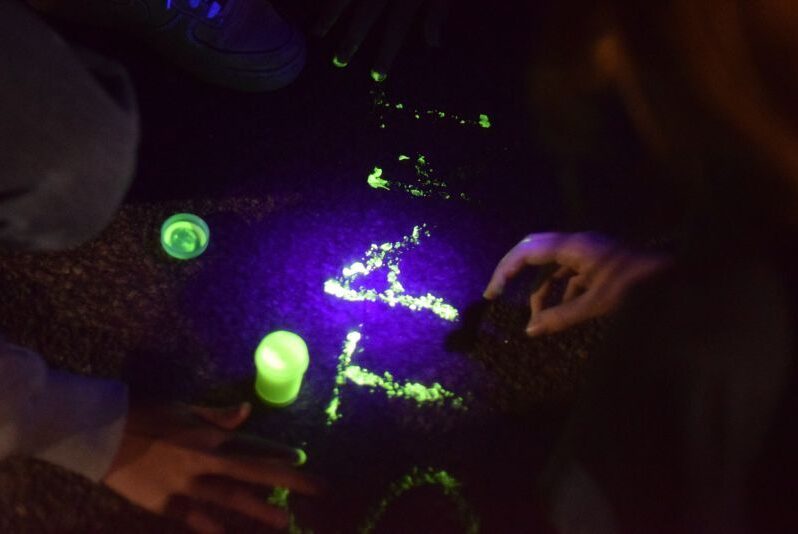 Die nächtliche Rallye, bei der wir mit Ultraviolett-Farben Spuren legen mussten? Liv hat das mit solcher Begeisterung gemacht, dass sogar eine Spinne ausversehen angemalt wurde und leuchtend davongerannt ist.